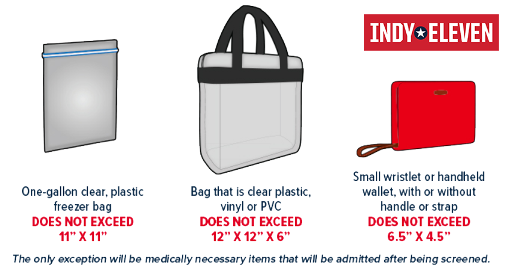 - Clear plastic, vinyl, or PVC bag not exceeding 12” x 12” x 6”