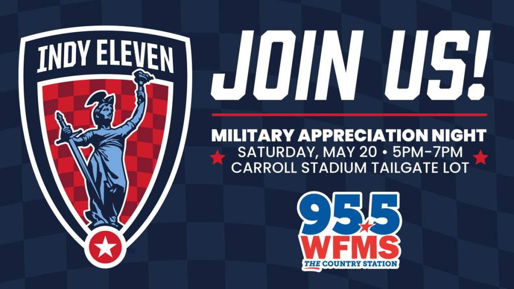 95.5 WFMS will be at Carroll Stadium’s tailgate party downtown to honor and pay tribute to the brave men and women who have proudly served our country as part of Military Appreciation Night at the Indy Eleven game on Saturday, May 20th!
