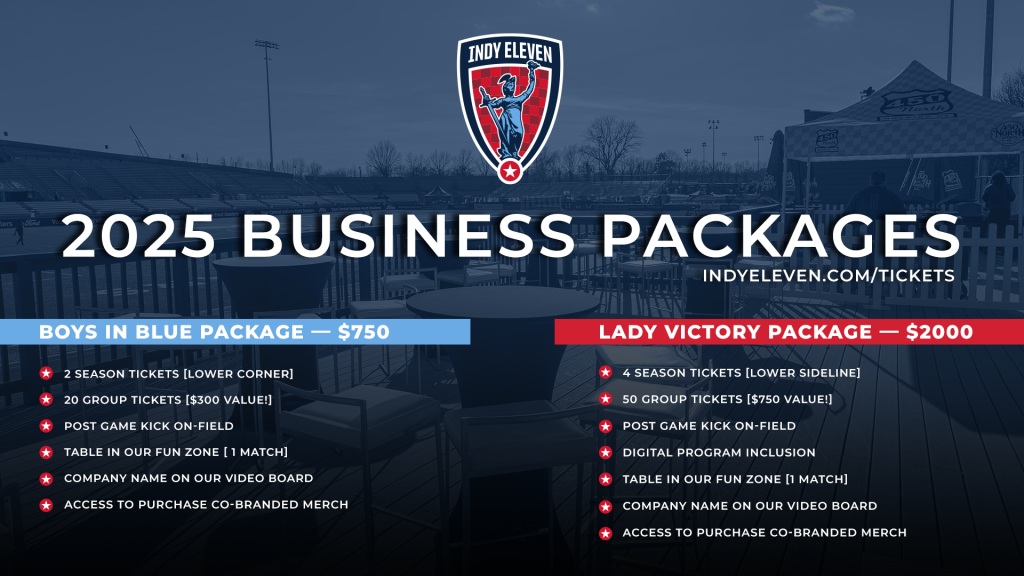 Once you purchase one of our business packages, an Indy Eleven representative will be in contact to pick out your exact season ticket seats, as well as your preferred match(es) for your group tickets!