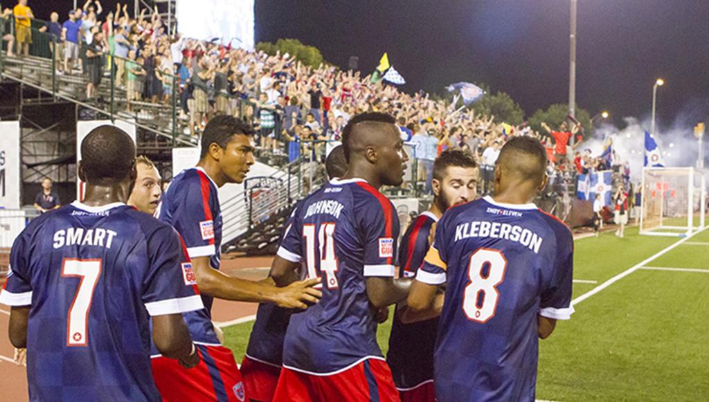 INDIANAPOLIS (Saturday, August 30, 2014) – After dropping several points at home late in matches, Indy Eleven flipped the script tonight against the New York Cosmos, as forward Jermaine Johnson’s 93rd minute equalizer gave the Indiana side a point from a 2-2 draw with the defending NASL champion in front of a sellout crowd of 10,659 at IUPUI’s Carroll Stadium. Johnson’s first goal with Indy Eleven capped the home side’s rally back from a two-goal deficit with a half hour to play after the Cosmos capitalized on a pair of chances to go up 2-0 into the halftime break.