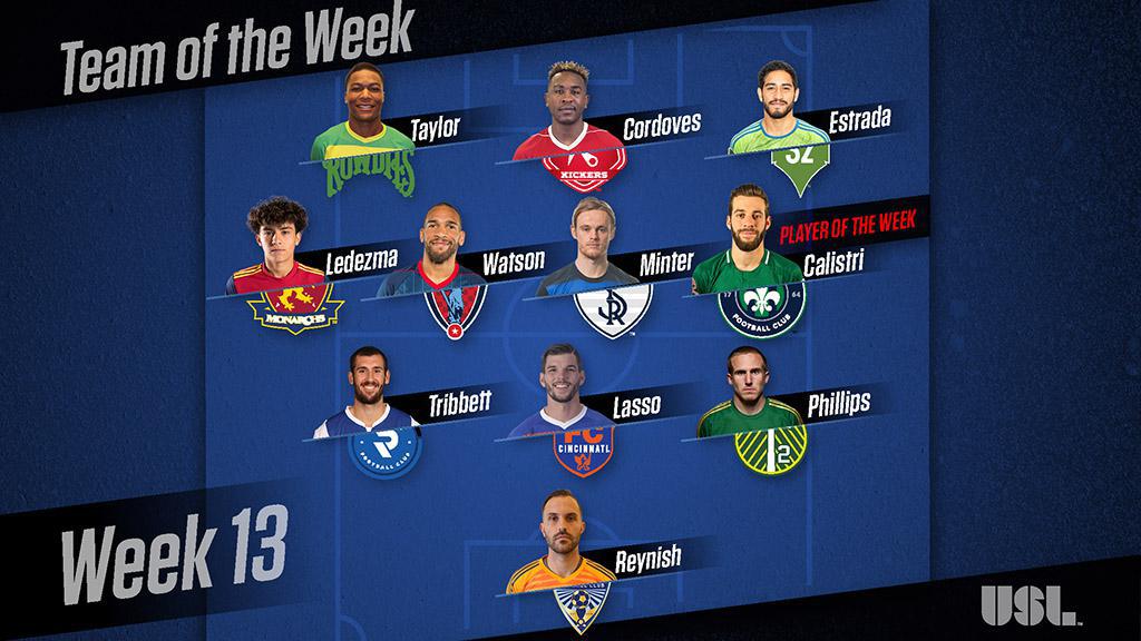 M – Joey Calistri, Saint Louis FC: Calistri had two goals and one assist, including a highlight-reel finish, as he led Saint Louis to a 3-0 victory against Tulsa Roughnecks FC on Saturday night.