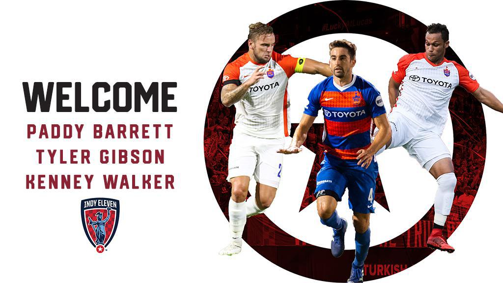 Indy Eleven Professional Soccer announces the signing of former FC Cincinnati defender Paddy Barrett; and midfielders Kenney Walker and Tyler Gibson to its 2019 roster pending league and federation approval.