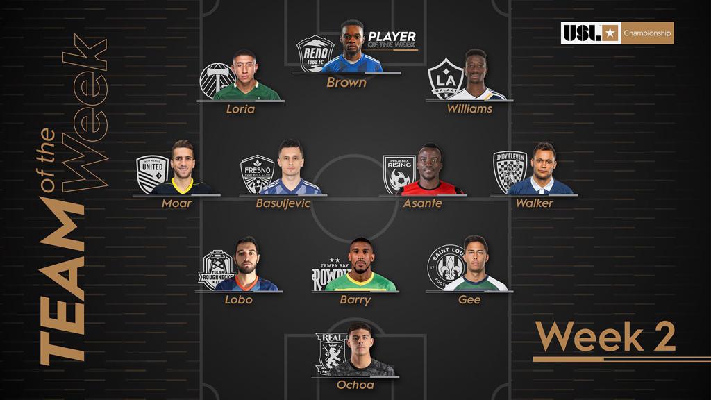 D – Luca Lobo, Tulsa Roughnecks FC: Making his professional debut, Lobo struck twice in four minutes as part of the Roughnecks’ run of five unanswered goals that earned the side its first road win since September 2017.
