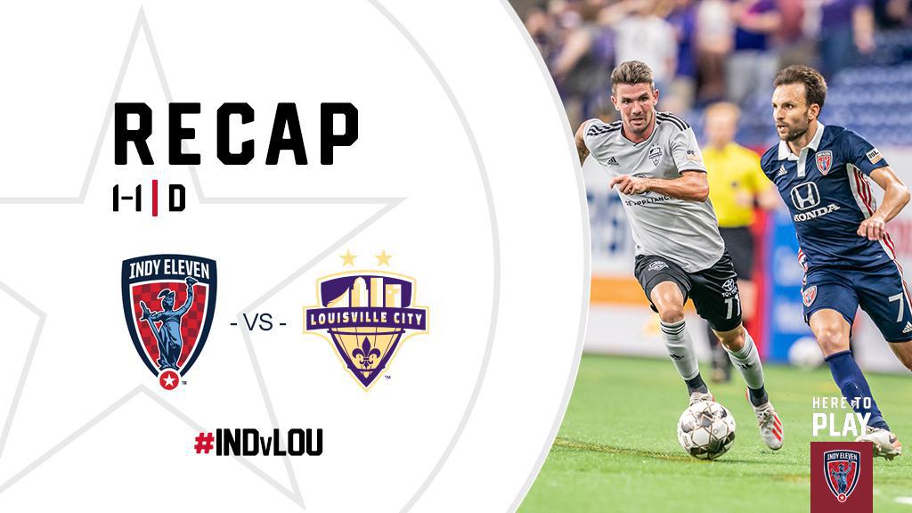 Indy Eleven (10W-2L-4D, 34 pts.) ended a three-game week at home with a hard-fought 1-1 draw against rival Louisville City FC (7W-5L-5D, 26 pts.). With Tampa Bay’s late 2-1 win at home over Ottawa Fury FC, Indy Eleven ended the evening in second place in the USL Championship’s Eastern Conference, now two points behind the Rowdies but with a game in hand.