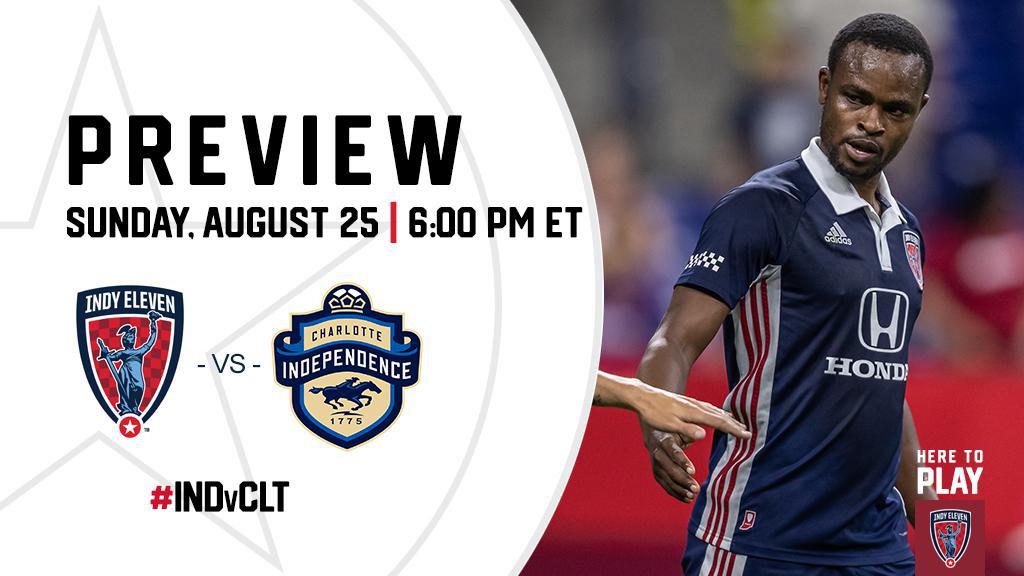 Indy Eleven will look to continue its climb up the Eastern Conference standings this Sunday, Aug. 25, when Indiana’s Team plays host to Charlotte Independence (5W-10L-10D, 25 pts., 12th in East). Kickoff for the team’s “Red Out Night” contest – for which fans are encouraged to wear their favorite red gear to Lucas Oil Stadium – is set for 6:00 p.m. (live on WISH-TV 8), and tickets remain available for as little as $15 at https://www.indyeleven.com/tickets or by calling 317-685-1100.