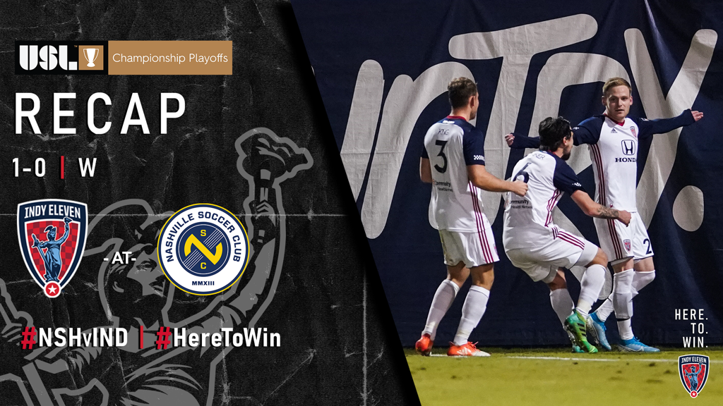 Indy Eleven forward Tyler Pasher's goal just inside the hour mark and a second straight shutout helped Indy Eleven advance past Nashville SC 1-0 in their Eastern Conference Semifinal showdown at First Tennessee Park. Indy Eleven put together one of its most composed away efforts of the season at the biggest time possible, calmly controlling the run of play and having the bulk of the chances until Pasher's breakthrough finally came in the 59th minute.