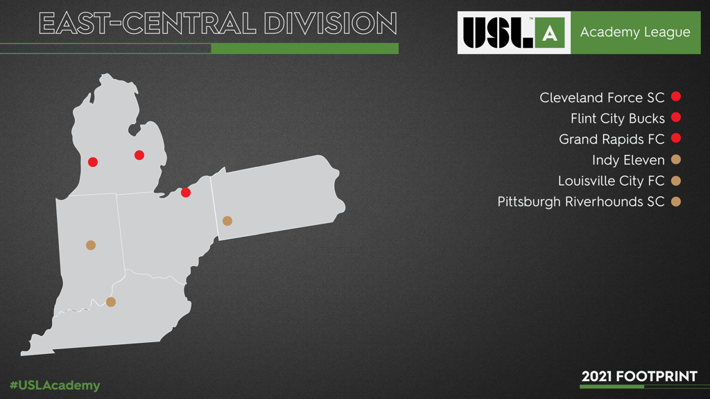 The USL Academy League’s regional division format will limit travel demands for teams and families, allowing a greater opportunity for USL member clubs to be represented. Indy Eleven will be one of six clubs represented in the East-Central Division of the inaugural USL Academy League, which also includes a pair of fellow Championship rivals in Louisville City FC and Pittsburgh Riverhounds SC, and a trio of USL League Two clubs – Cleveland Force SC (future USL League Two), Flint City Bucks. and Grand Rapids FC.