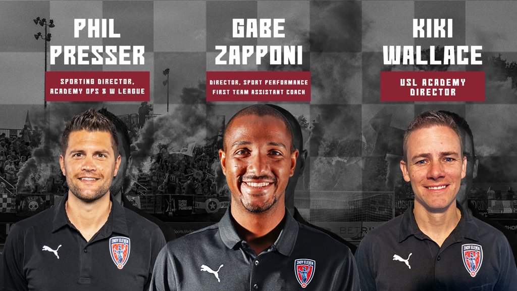 INDIANAPOLIS – Indy Eleven today announced three pivotal Technical Staff hires that will bolster support of the club’s USL Championship squad and its recent investments towards youth and women’s soccer initiatives. The trio of personnel moves see Phil Presser take over a newly created Sporting Director, Academy Operations & W League role, Eleven USL Academy League Head Coach Kiki Wallace serve as the organization’s new Academy Director, and Gabriel Zapponi assume duties as Director, Sport Performance and Assistant Coach for Indy’s USL Championship squad.