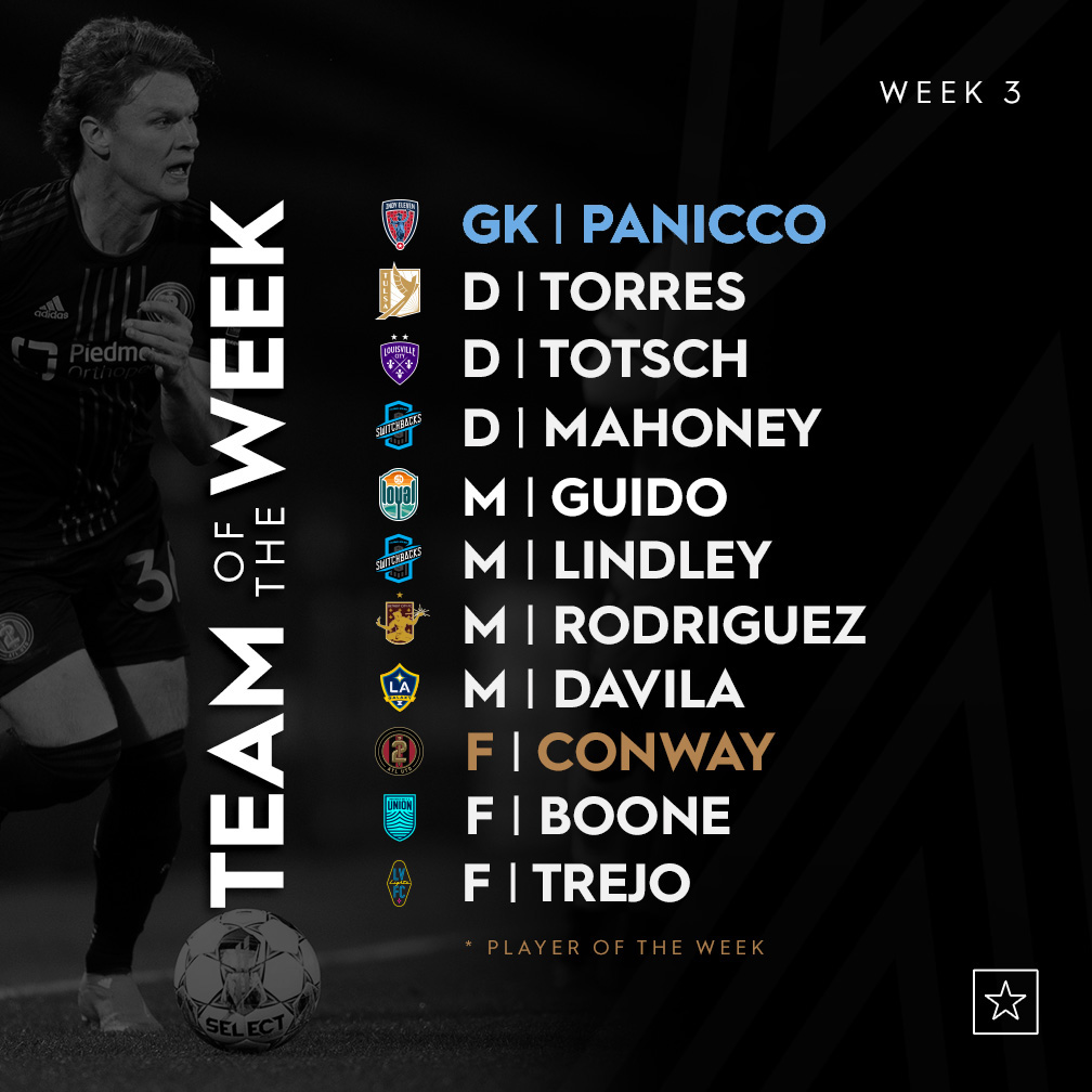 The Championship’s Player of the Week is selected by the USL National Media Panel, which is made up of representatives from each media market in the Championship. Continue below to see the full Week 3 Team of the Week contingent.