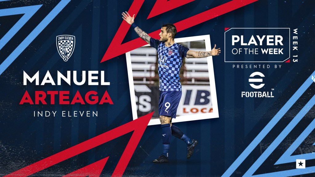 TAMPA/INDIANAPOLIS (Tuesday, June 7, 2022) – The USL Championship announced the Team of the Week for Week 13 of the 2022 regular season on Tuesday, with Indy Eleven forward Manuel Arteaga voted the Championship Player of the Week presented by Konami eFootball after recording a first-half hat trick against the Charleston Battery on Saturday night in a 4-3 victory for the Boys in Blue at Patriots Point.