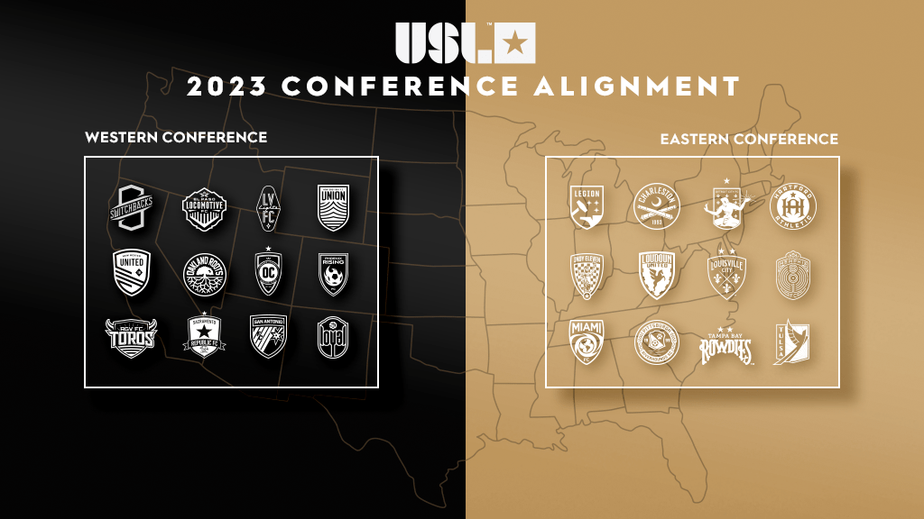 The USL Championship today announced its competition structure for the 2023 season. The league’s 24 teams will be divided into two conferences – a balanced 12 in the Eastern Conference and 12 in the Western Conference (see lists below).