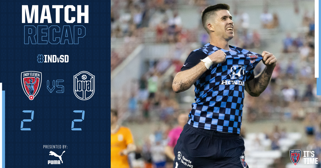 INDIANAPOLIS (Saturday, July 1, 2023) – For the second time this season, Aodhan Quinn scored a pair of penalty kicks and helped earn Indy Eleven a come from behind 2-2 draw against San Diego Loyal SC at home on Saturday night. With the point, Indy improves to 5-6-5 on the season, while San Diego sits at 6-5-6.