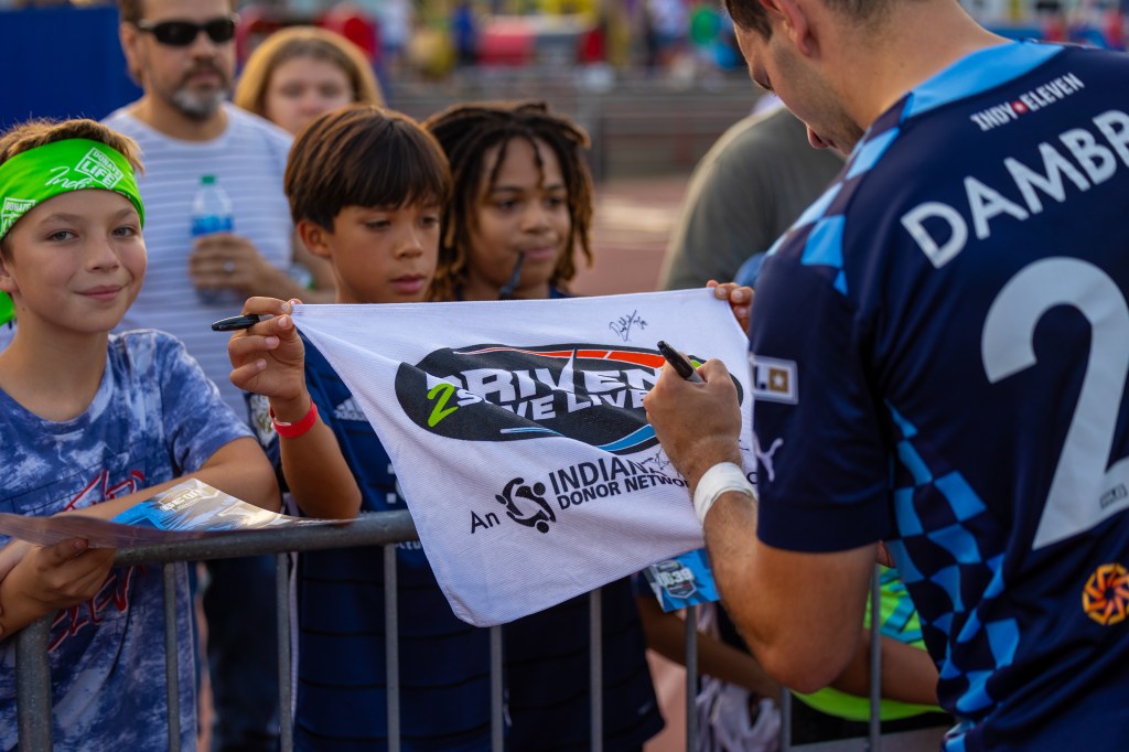 At the conclusion of the match day event, Indy Eleven auctioned off 25 BC39 inspired warm-ups to raise money for the Bryan Clauson Legacy Fund while raising awareness for Driven2SaveLives and the Indiana Donor Network. Nearly 100 adults and over 200 children joined the Indiana Donor Network on match day to learn more about how they can get involved. If you wish to learn more about Driven2SaveLives and Indiana Donor Network you can follow these links.