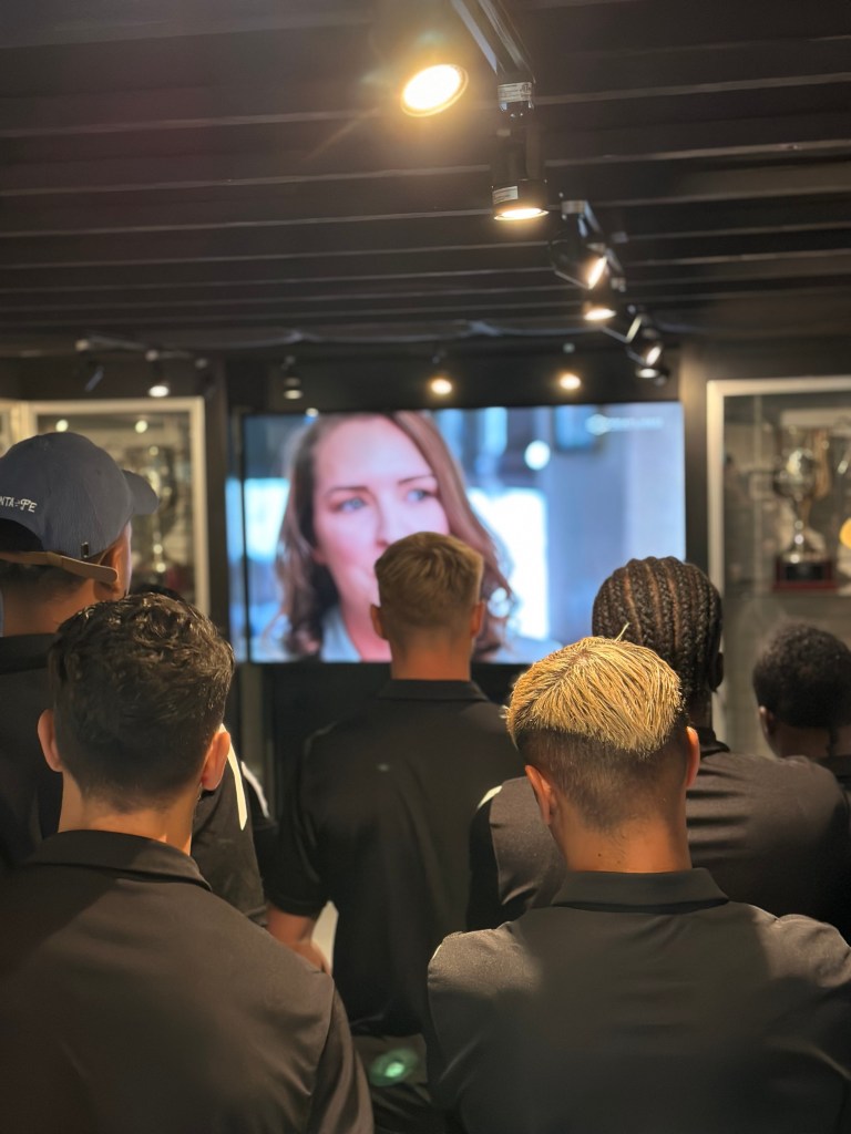 Given the power of sports, Blake said he related to Clauson’s love for racing as it echoes his love of soccer. Blake shared that he had the opportunity to go to the Indy 500 where he experienced the passion of race fans from the stands.