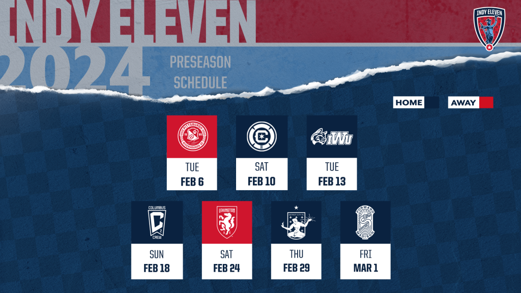 INDIANAPOLIS (Friday, Jan. 19, 2024) – Indy Eleven has today announced a slate of seven preseason matches, including a pair of home games that will be open to the public in preparation for the 2024 USL Championship season.