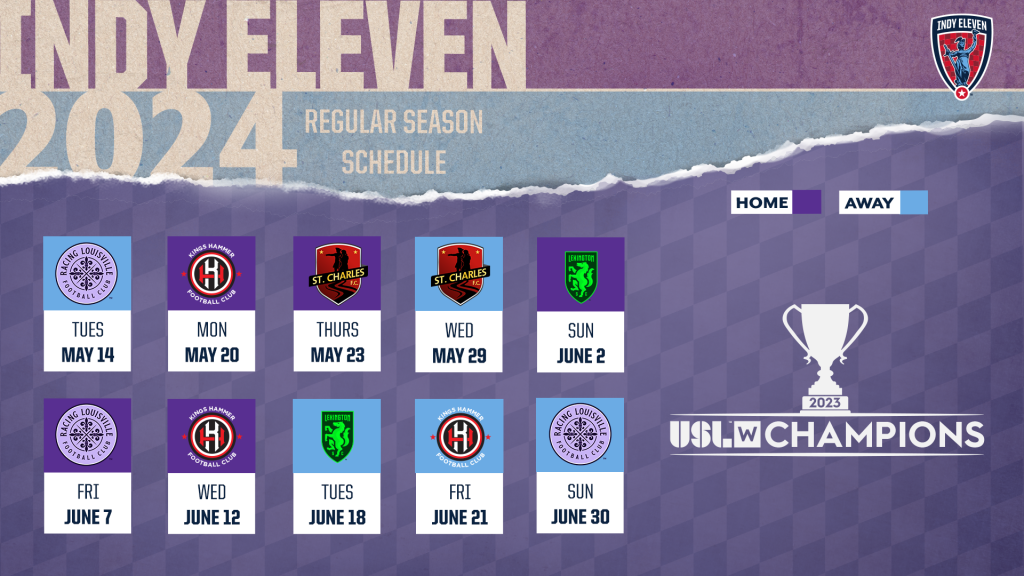 INDIANAPOLIS (Thursday, February 15, 2024) – The 2023 USL W League Champion Indy Eleven women’s team today announced the complete 2024 schedule, featuring five matches to be played at the Grand Park Events Center in Westfield, Indiana.
