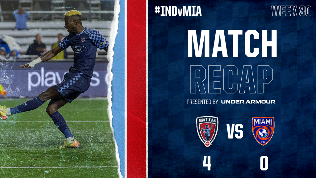 Indianapolis – Indy Eleven forward Augi Williams became the third player in franchise history to record a hat trick to lead the Boys in Blue to a 4-0 victory over Miami FC at Carroll Stadium on Saturday night. Williams scored all his goals in a 13-minute span in the second half to increase a 1-0 lead to the final margin. Forward Elliot Collier came off the bench to assist on the first and third of Augi’s goals, and defender Logan Neidlinger recorded his first career assist on the other one.