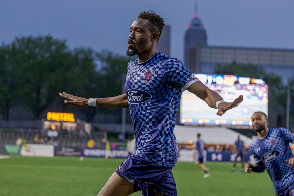 (May 6, 2025) Tampa, Fla. – Indy Eleven forward Elvis Amoh is on the USL Championship Team of the Week for weeks 8/9 after scoring two goals for the second consecutive match to rally his team to a 2-2 draw against USL Eastern Conference rival Detroit City FC at Carroll Stadium on Saturday.
