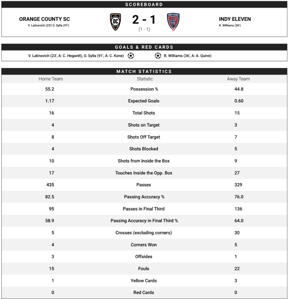 Indy Eleven 1:2 Orange County SC - Sat., Oct. 25, 2025 – 10:00 p.m.