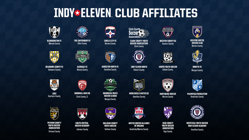 This program, presented by Allegion and Ford, is designed to support more than 18,000 rec-level players from programs across the Hoosier State and beyond. The 24 Indy Eleven Club Affiliate Program members are listed below.