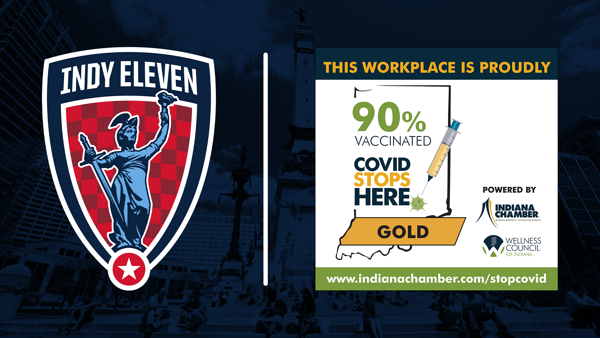 INDIANAPOLIS – Indy Eleven is proud to be recognized by the Indiana Chamber of Commerce and Wellness Council of Indiana as a GOLD COVID Stops Here workplace for achieving a vaccination rate of over 90%.