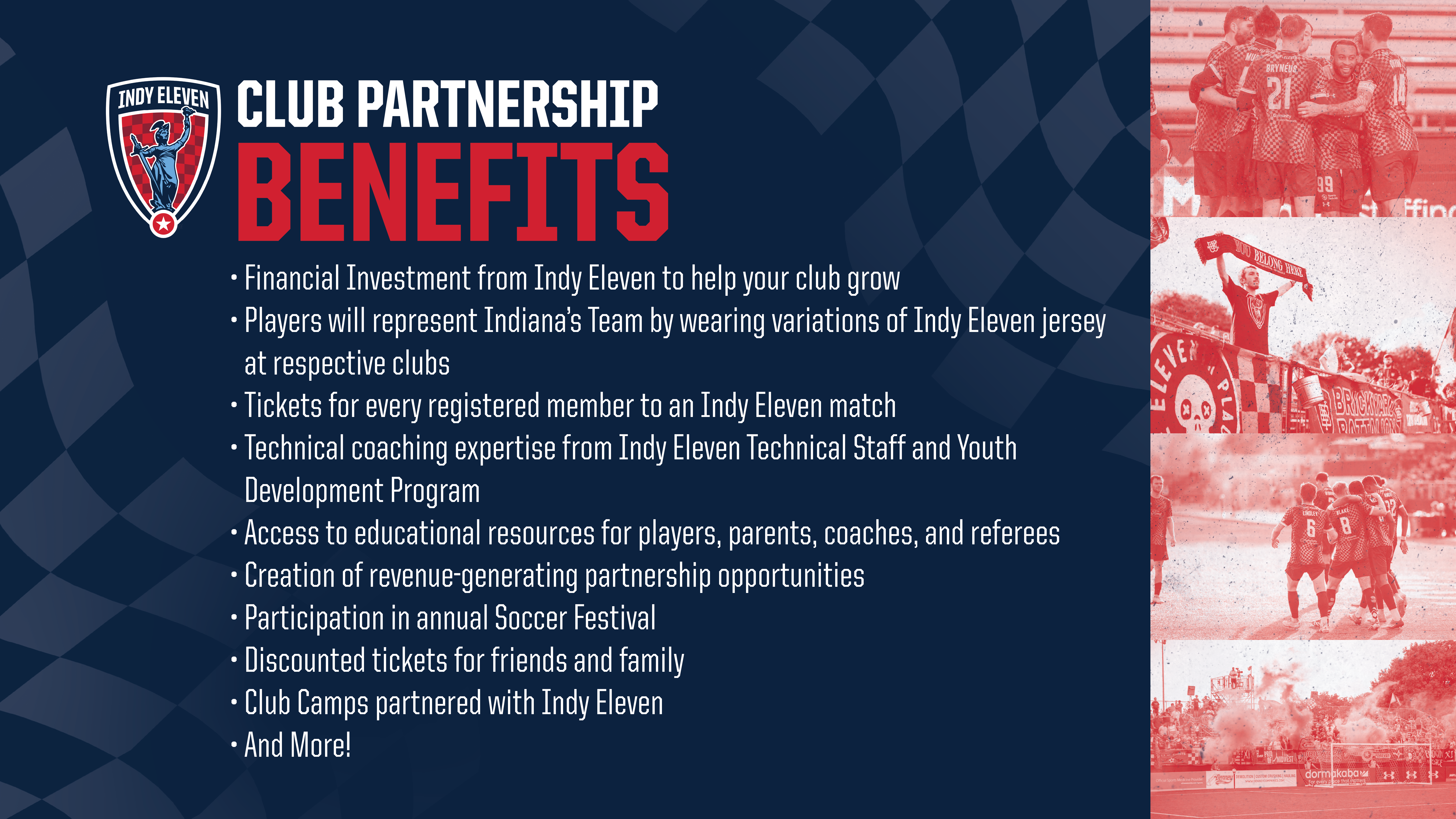 If your recreational soccer program is interested in learning more and/or becoming a Founding Club partner, click the button below to fill out a brief form to provide more information on your club. In addition, you may contact Seth Kimberlin, Indy Eleven VP of Marketing & Club Growth, at skimberlin@indyeleven.com with any questions regarding the partnership program.