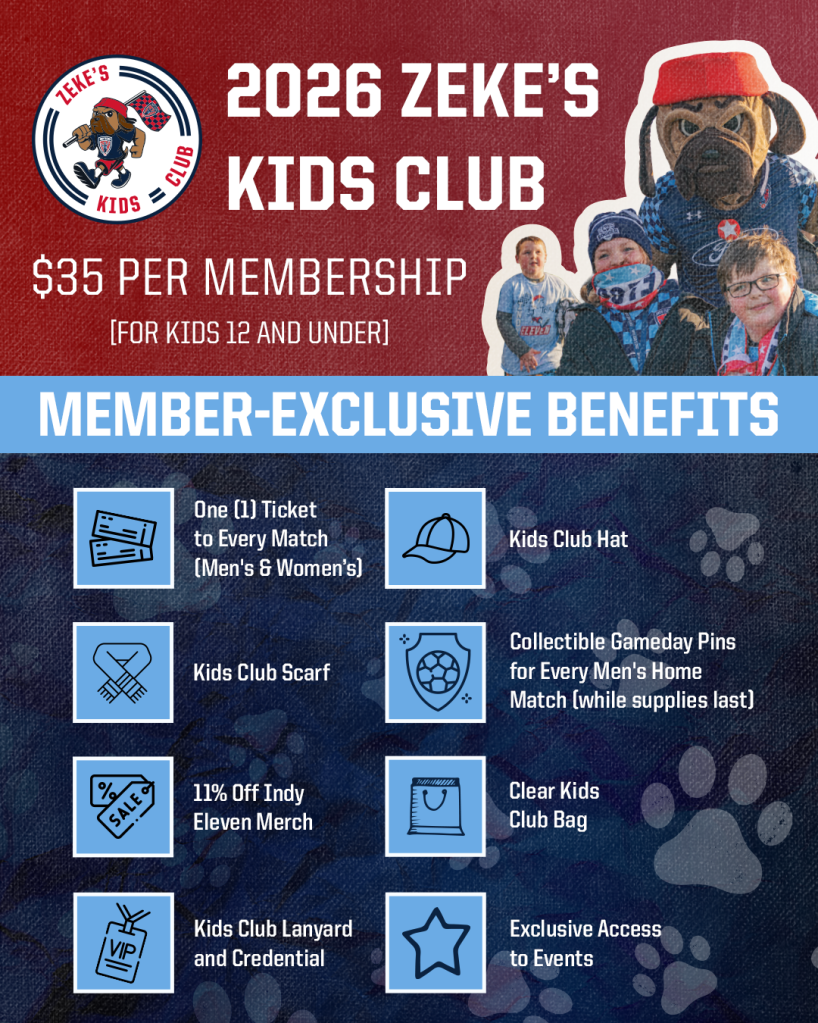 For 2026, the Indy Eleven Kids Club Membership includes: