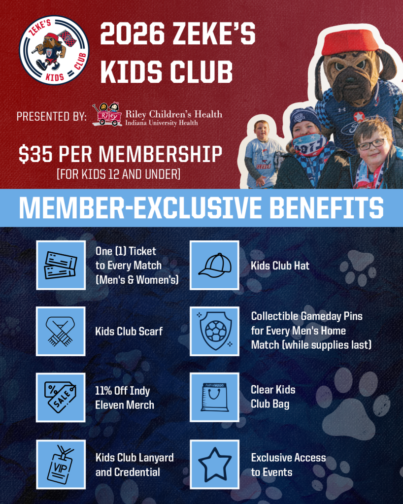 For 2026, the Indy Eleven Kids Club Membership includes: